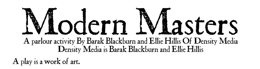Modern Masters is a game in that it is a structured activity, Gather friends and re-enact famous scripts from today’s modern masters.